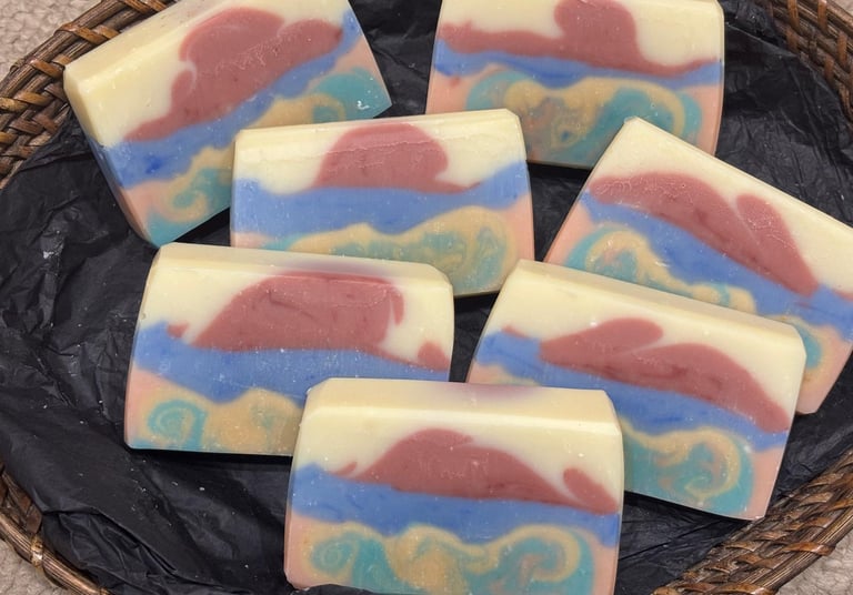 Handmade soaps crafted with coconut, olive, and essential oils for your skin’s delight.